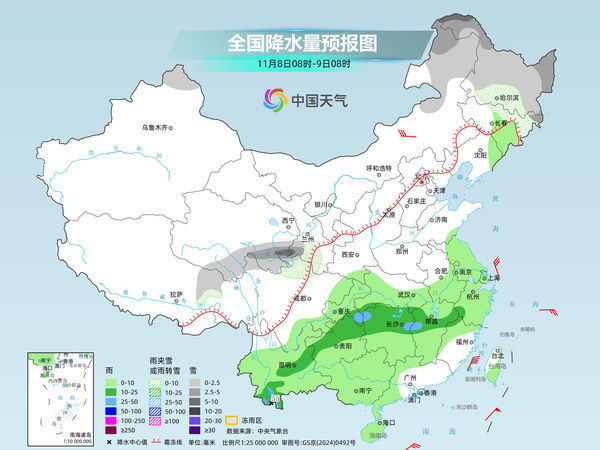 周末两天(11月8日、9日),冷空气将继续向东、向南移动。东北多地仍有大雪,江南多地降水将加剧。市民外出时应小心驾驶、缓慢行驶,并警惕能见度下降和路面湿滑对交通造成的不利影响。在冷空气和降雨的共同影响下,江南不少地区将恢复降温模式,破坏感和寒冷感将更加严重。要及时添加衣服,避免感冒。东北多地仍有大雪,江南部分地区雨势加大。昨天,西北地区雨雪天气有减弱和停的趋势。随着冷空气东移,雨雪主要受灾区向东扩散。内蒙古东部多地有大雪东北。其中,青海东北部、甘肃南部、河北北部、内蒙古东部、东北地区西部等地有小到中雪或雨夹雪。内蒙古赤峰市局地大雪。周末两天,这股冷空气将继续向东、向南移动,东北多地仍有降雪。同时,受冷暖空气影响,江南部分地区降雨也将加大。中央气象台预计,内蒙古东北部、东北地区北部和东部、青海南部等地的部分地区有小到中雪或晴。其中,黑龙江西北部、青海东南部等地区部分地区将有大雪,新增雪深2至5厘米。江南北部、北部、西部等地部分地区有中到大雨贵州、云南南部和东北部,云南西南部局地有强降雨。明天,内蒙古东北部、黑龙江北部和东部、青海东部等地的部分地区有小雪或雨夹雪。建淮西部、江汉南部、江南大部、西南地区东部和南部、广西西部、海南岛、台湾岛等地区的部分地区有小到中雨。其中,云南西南部部分地区将有强降雨。后天,新疆北部、青海东部等地部分地区有小雪或雨夹雪。其中,新疆阿勒泰山区将有中到大雪。台湾岛部分地区有大到大雨。其中,台湾岛东北部有大雨或特大暴雨。今明两天,东北多地仍有大雪,南方降水将增多h 长江。要避免能见度降低、道路湿滑对交通造成的不利影响。后天起,冷暖空气交汇带来的降水逐渐减弱,但随着“凤凰”的临近,东南沿海逐渐升起,还需继续关注。长江以南多地已开启降温模式。下周两股冷空气将相互袭来。昨天,受冷空气影响,北方出现明显降温,东北多地气温创今年下半年最低气温。现在,随着冷空气东移、南移,主要降温区域将南移。周末两天,在冷空气和降雨的共同影响下,江南多地最高气温将降至20℃以下。不过,冷空气移动速度较快,下周初该地区将遗憾回暖。其中大长沙昨日最高气温为23℃,今日将降至16℃。下雨天,寒冷和潮湿的感觉会增加。这波冷空气影响结束后,下周冷空气仍将活跃,各地气温将发生变化。 11日至13日,弱冷风自西向东影响中东部地区,15日将有较强冷风袭来。建议公众及时关注气温变化,及时添衣,谨防感冒。 上一篇:聚焦大湾区丨湾区携手筑梦——粤港澳联合举办 下一篇:没有了
